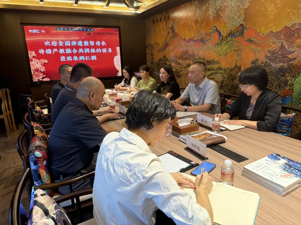 朱红亮详细介绍了学校在非遗传承传播方面的成果,学校已与企业共建了“人才培养孵化器”,双方在横向课题、企业培训、教师下企业实践全面开展了合作,后续将同时将组织力量,共同开发非遗文创课程体系、师资培训等项目,推动将非遗文创产业最新标准和实践案例引入课堂,打通教学与就业的壁垒,提升学生的文化认同感与职业技能。