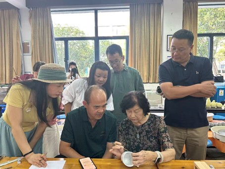 2025年10月15日至10月17日,由浙江经济职业技术学院承办的浙江省中小学教师专业发展自主选课集中培训项目——“非遗釉上彩美育在中小学的应用与实践”培训班在杭州圆满落幕。本次培训的一大亮点是国家级非遗项目“越窑青瓷烧制技艺”代表性传承人、中国工艺美术大师嵇锡贵的亲临参与,她不仅带来精彩讲座,更深入实践课堂,亲自对学员进行指导,让来自全省的25名中小学教师受益匪浅。